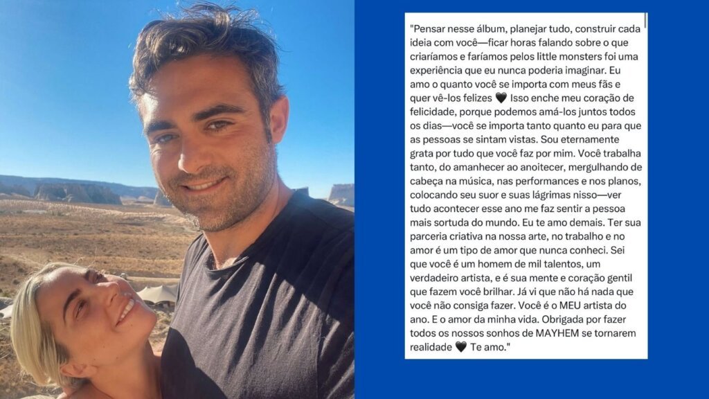 Em clima de romance, Lady Gaga se declarou para o noivo, o empresário Michael Polansky, por meio de uma publicação nas redes sociais. A diva pop compartilhou cliques carinhosos e agradeceu o apoio do companheiro durante o processo criativo de seu novo álbum, Mayhem.
