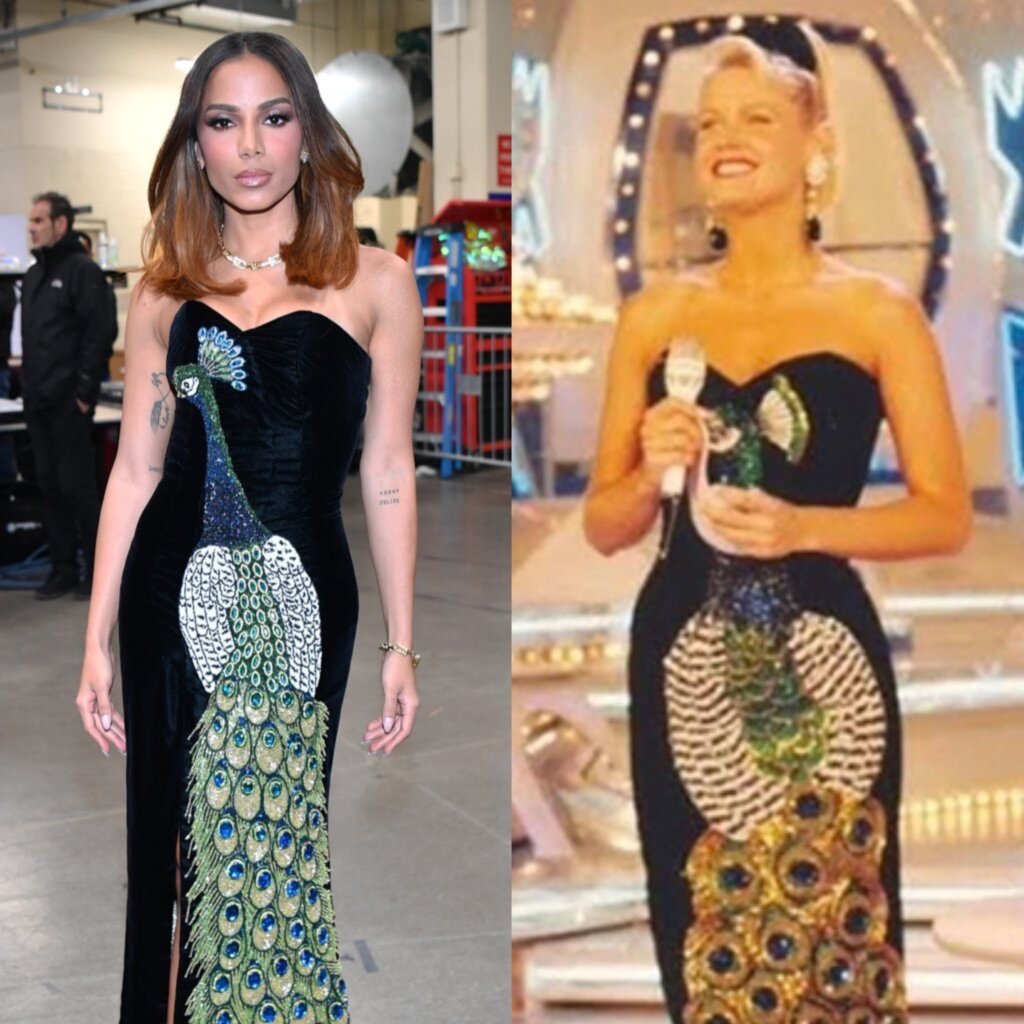 Para a ocasião, a cantora escolheu um vestido de veludo preto com bordado de pavão, peça icônica que já havia usado no Grammy Latino de 2022. O look, inspirado em um traje clássico de Xuxa, remete ao usado pela apresentadora no último episódio do programa Xou da Xuxa, exibido em 1992.