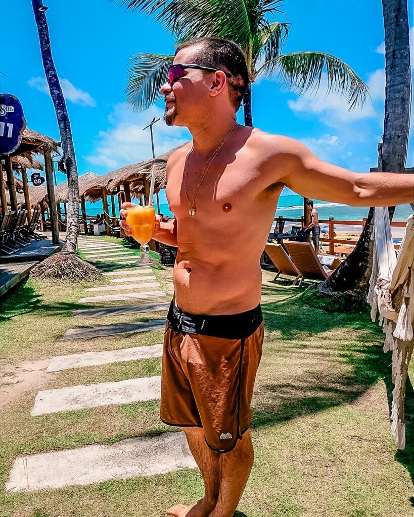 Nas redes sociais, o artista compartilhou registros da viagem e revelou estar em “mini férias”, aproveitando dias de descanso no Clube de Plage Cupe, em Ipojuca. Ele deve permanecer no local pelos próximos quatro dias.