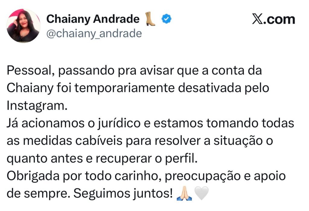 A equipe responsável pelas redes sociais da sister informou o ocorrido por meio do X (antigo Twitter). Segundo o comunicado, a conta foi desativada temporariamente e o jurídico já foi acionado para resolver a situação e recuperar o perfil.