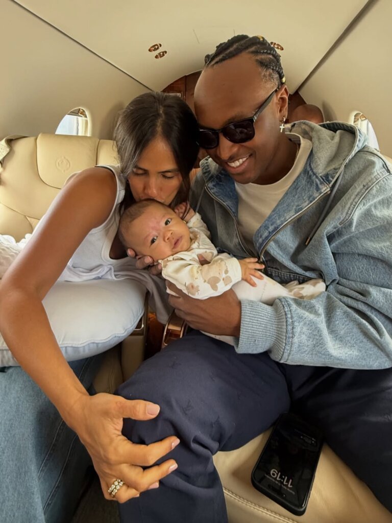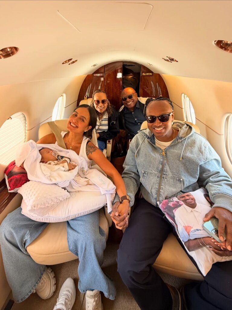 Nos cliques, os dois aparecem sorridentes dentro de um jatinho, segurando o bebê no colo. “Primeira viagem do nosso maior destino. Descobrindo o mundo com ele!”, escreveram na legenda do post.