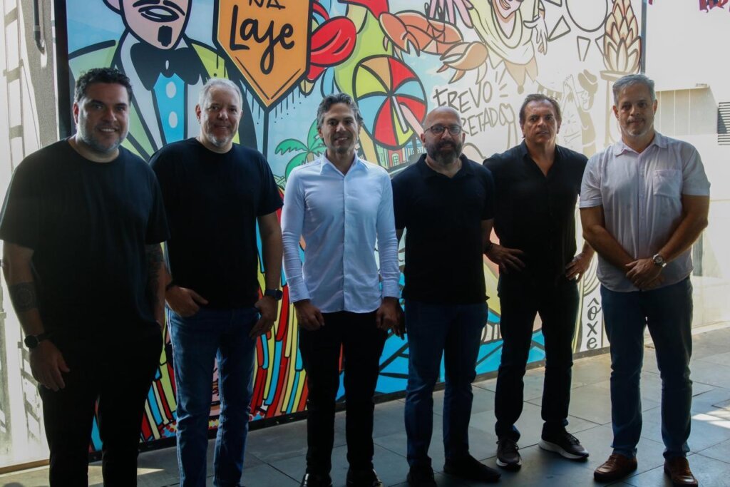 Os sócios André Branco, Tiago Carneiro, Carlito Asfora, André Lubambo e Alexandre Barbosa se reuniram no Moendo na Laje, no Recife, para definir o menu que será servido no Camarote Marco Zero durante o Carnaval 2026. A proposta gastronômica ficará a cargo do chef Rapha Vasconcellos, que participou do encontro para alinhar ideias e garantir um cardápio à altura da folia no Recife Antigo.