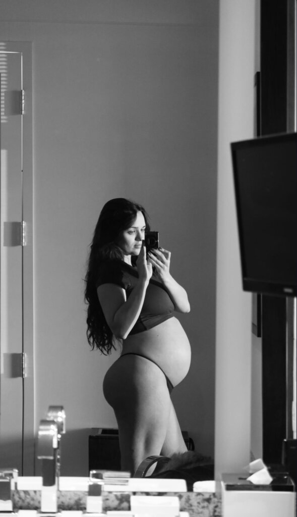 Na reta final da gravidez, a ex-BBB Rafa Kalimann mostrou o barrigão em frente ao espelho e compartilhou o registro em suas redes sociais. Com mais de 20 milhões de seguidores, a influenciadora está à espera de sua primeira filha, Zuza, fruto do relacionamento com o cantor Nattan.