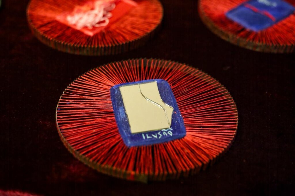 Com vermelhos intensos misturados a formas afiadas que solidificam a maleabilidade do tecido, o projeto de Lua concilia a minúcia e a delicadeza das linhas de costura com a incisividade dos instrumentos perfurantes. Arames, lâminas, punhais e serrotes tensionam a natureza leve do bordado, explorando a ambiguidade entre a entrega do corpo e o destemor diante das dores da vida. Frequentemente, na exposição, as duas coisas se misturam e ganham novos significados, conforme a bagagem que o visitante traz consigo.