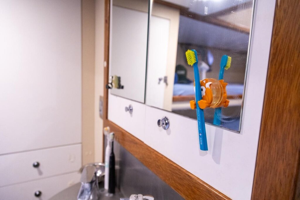 O Giro ainda fez uma tour pelo veleiro Kat, embarcação de 80 pés (cerca de 24 metros) construída entre 2013 e 2014, com sete cabines, seis quartos, três banheiros, sala de jantar, cozinha planejada, despensa e painel de controle. Com cerca de 67 toneladas, o barco conta com sistemas sustentáveis como painéis solares, energia eólica e hidrogerador, além de tratamento de esgoto com ozônio e luz UV. A embarcação também possui um compactador que reduz o volume de recicláveis em até 80% e tecnologias que transformam plástico em material reutilizável. O nome “Kat” é uma homenagem à filha adotiva do casal, Kat Schurmann, que faleceu em 2006. Confira cliques da tour abaixo: