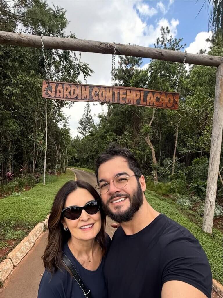 “Enfim uma folguinha para visitar o Jardim. Amamos”, escreveram na legenda, posando sorridentes para os cliques durante o passeio.