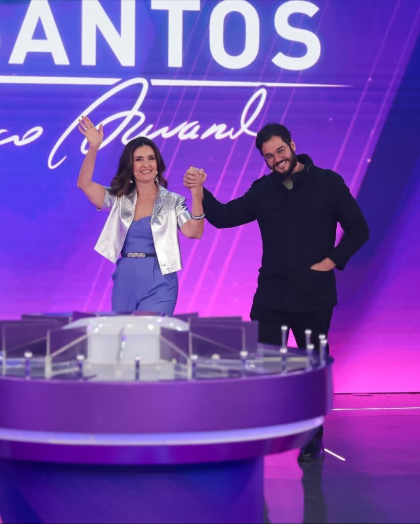 Fátima Bernardes e Túlio Gadêlha gravam programa no SBT