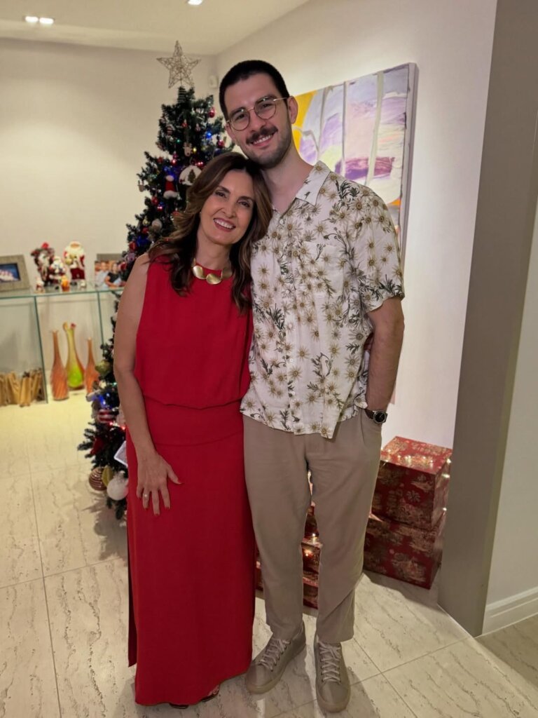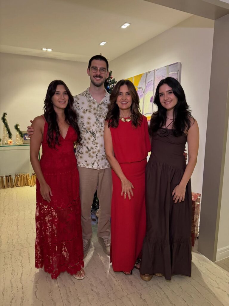 Fátima Bernardes celebrou o Natal em clima de afeto e união ao lado dos filhos trigêmeos, Vinícius, Laura e Beatriz, de 28 anos, e do namorado, o deputado federal pernambucano Túlio Gadêlha. A jornalista compartilhou nas redes sociais registros da ceia, marcados por sorrisos e momentos em família.