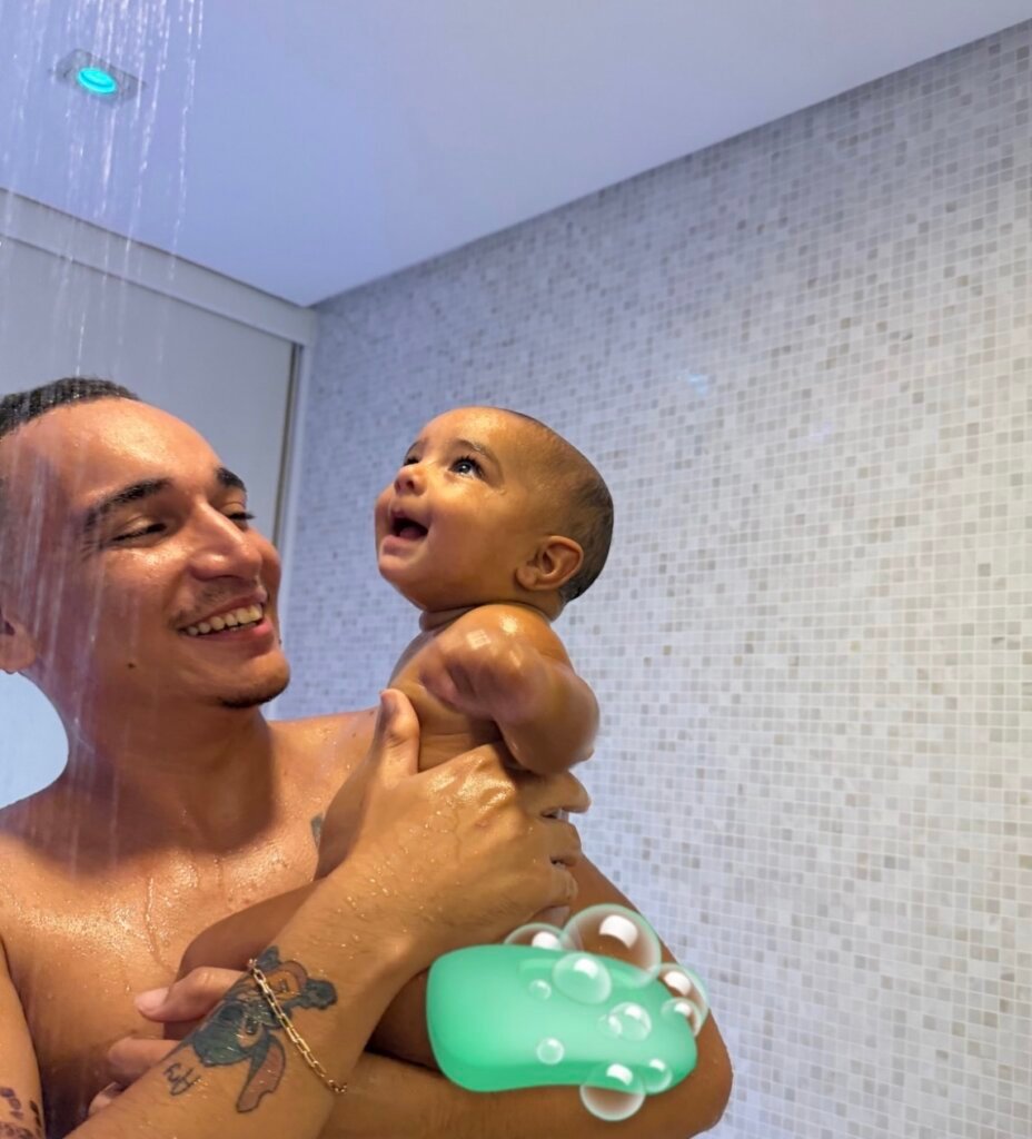 “Primeiro banho de chuveiro do Caquim com papai”, escreveu o artista na legenda da postagem. Nos comentários, fãs reagiram com mensagens carinhosas e elogios ao registro do pai com o filho.
