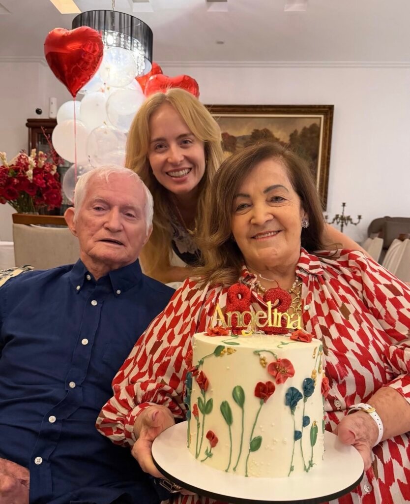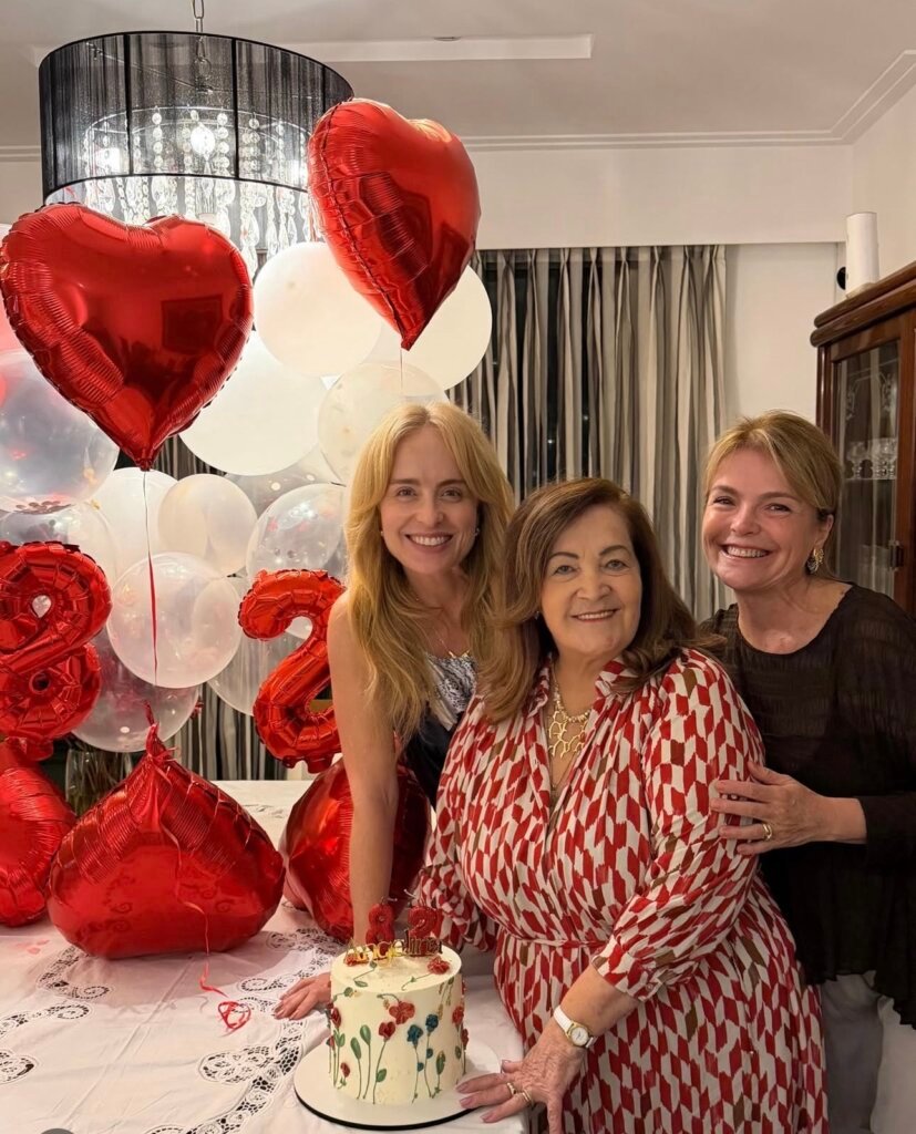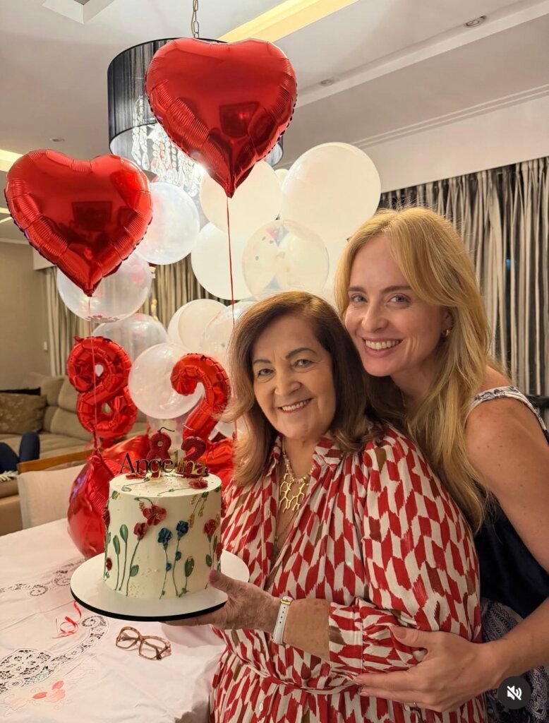 Para não passar em branco, a celebração intimista aconteceu na residência da matriarca, no Rio de Janeiro, e contou com balões em formato de coração, além da presença de familiares próximos. Estiveram presentes o marido de Angelina, Francisco Ksyvicks, e a outra filha, a empresária e produtora artística Márcia Marbá.
