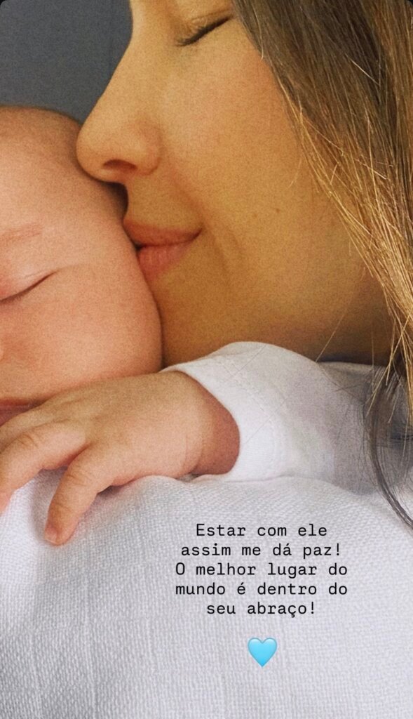 Mariana Rios se declarou para o filho, Palo, ao compartilhar um registro carinhoso nas redes sociais. A atriz, que deu à luz em dezembro o primeiro filho, fruto do relacionamento com Juca Diniz, escreveu: “Estar com ele me dá paz! O melhor lugar do mundo é dentro do seu abraço”.