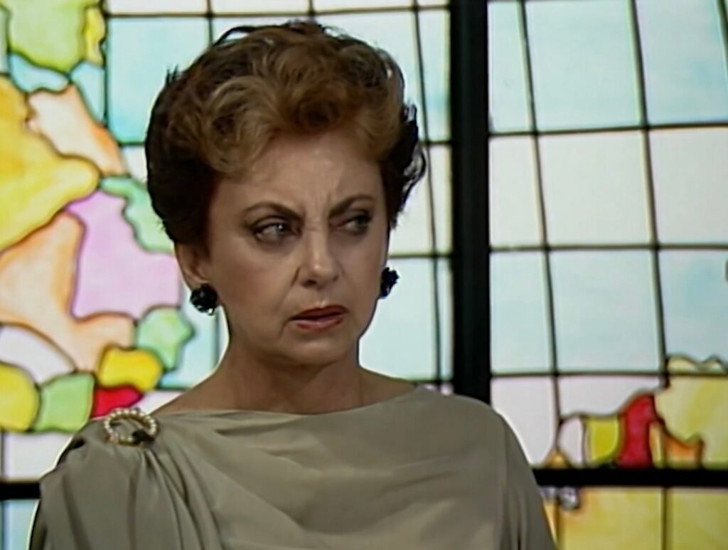 Na versão original, Segall usou blusa cinza com faixa e ornamento brilhoso, combinando com saia midi preta e meia-calça. O look, que se tornou marcante na memória do público, é recriado com cuidado para homenagear a atriz e a história da trama.