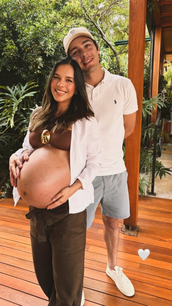 Nos cliques, Mariana surgiu sorridente ao lado dos parentes. Na legenda, ela ainda contou que se impressionou com o tamanho da barriga. “Gente do céu, olha o tamanho disso”, escreveu.