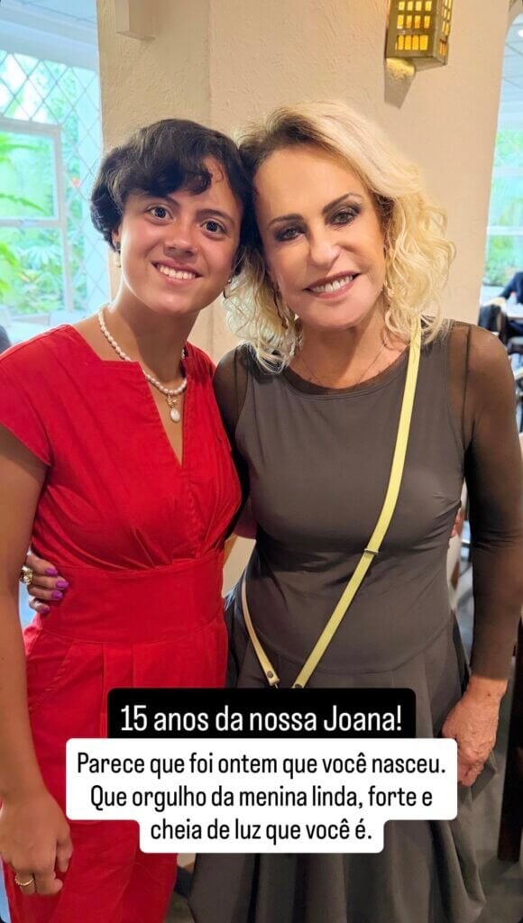 Ana Maria Braga comemorou, nesta semana, o aniversário de 15 anos de sua primeira neta, Joana, filha de Mariana Maffeis. A data foi marcada por uma homenagem carinhosa publicada nas redes sociais da apresentadora do Mais Você.