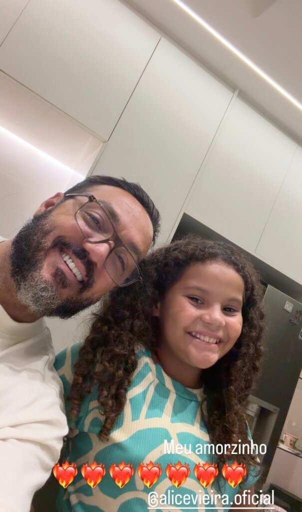 No ar como Misael em Três Graças, papel que marca sua estreia como ator nas novelas da Globo, Belo fez uma rara aparição ao lado da neta, Alice. Em suas redes sociais, o cantor publicou uma selfie com a menina, de nove anos, e se declarou: “Meu amorzinho”, acompanhado de emojis de coração, mostrando o carinho pela neta, filha de Ingrid Vieira.