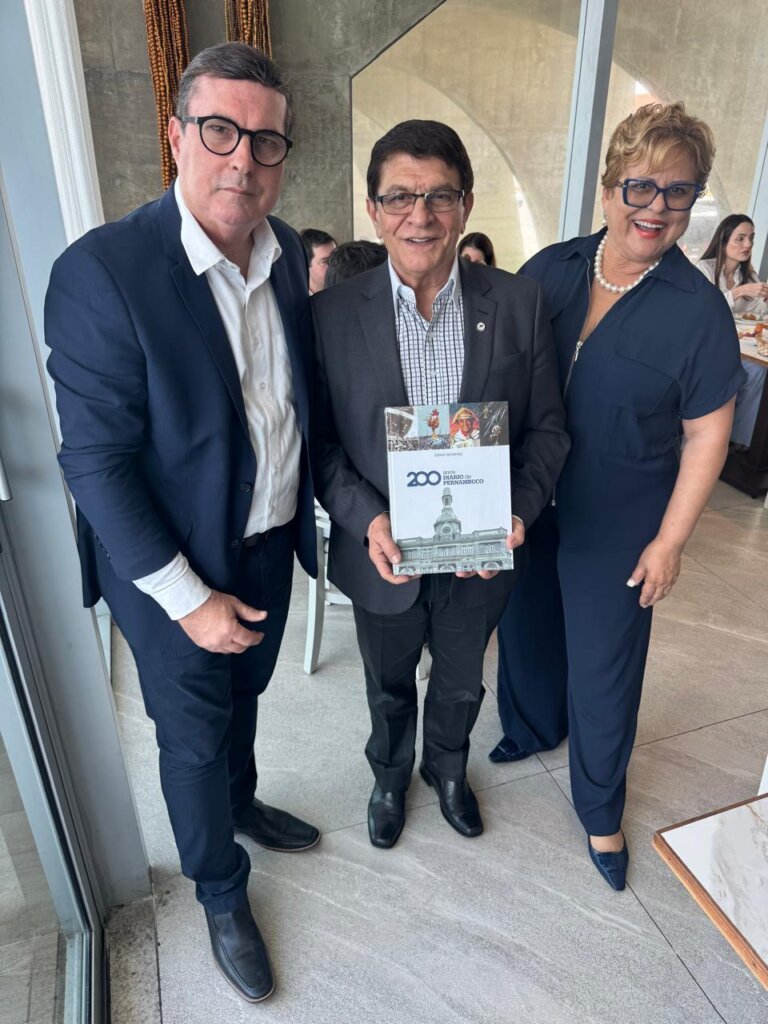 O presidente do Conselho Federal dos Corretores de Imóveis (COFECI), João Teodoro da Silva, recebeu um exemplar do “Diario de Pernambuco 200 Anos”, escrito por Ennio Benning, das mãos da presidente do CRECI-PE, Zélia Pereira, e do conselheiro federal Felipe Pessoa de Mello, durante um encontro institucional.