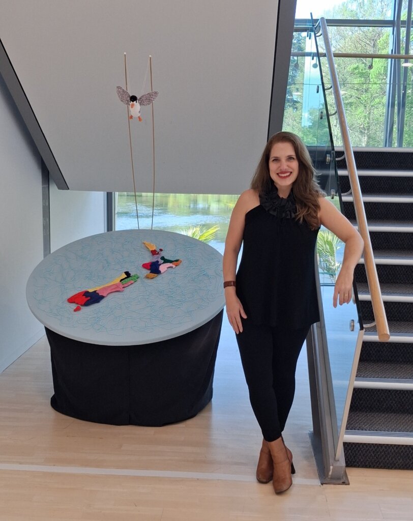 Segundo Gisela, a proposta é dar protagonismo às crianças na construção das narrativas sobre o território. O projeto funciona como um “mapa afetivo” da Nova Zelândia e é guiado pelo mascote tara iti, a andorinha-fada considerada uma das aves mais ameaçadas do país, reforçando também a reflexão sobre meio ambiente e futuro.