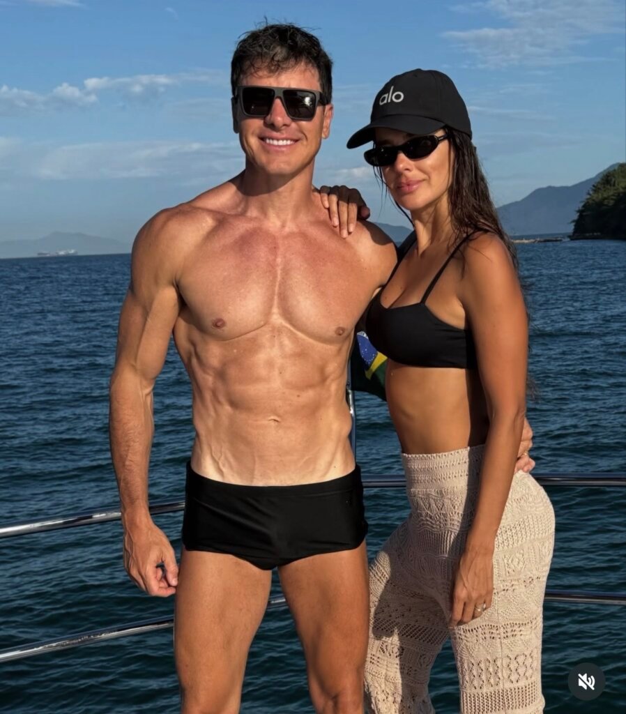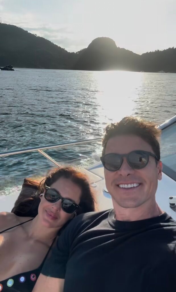 No post, eles compartilharam um registro romântico a bordo de uma lancha. Na imagem, aparecem abraçados: Vera usa biquíni preto e chapéu, enquanto Rodrigo surge de sunga, em clima de sintonia. “Enquanto o mundo desacelera depois da folia, nós escolhemos o silêncio do mar, o balanço do barco e a paz de estarmos juntos”, escreveram.