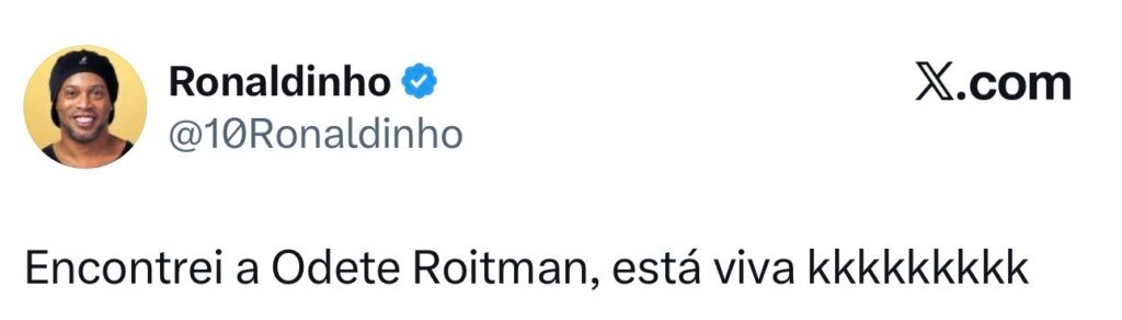 “Encontrei a Odete Roitman e ela está viva”, escreveu ele na legenda da publicação, reforçando a brincadeira que circula na internet de que é “o rei dos encontros inesperados”. Nos comentários, vários seguidores do craque reagiram com bom humor. “Cuidado, meu bem, ela está te usando”, escreveu um internauta, fazendo referência a um dos bordões da personagem na novela. “Que horas você aparece no capítulo final?”, brincou outro.