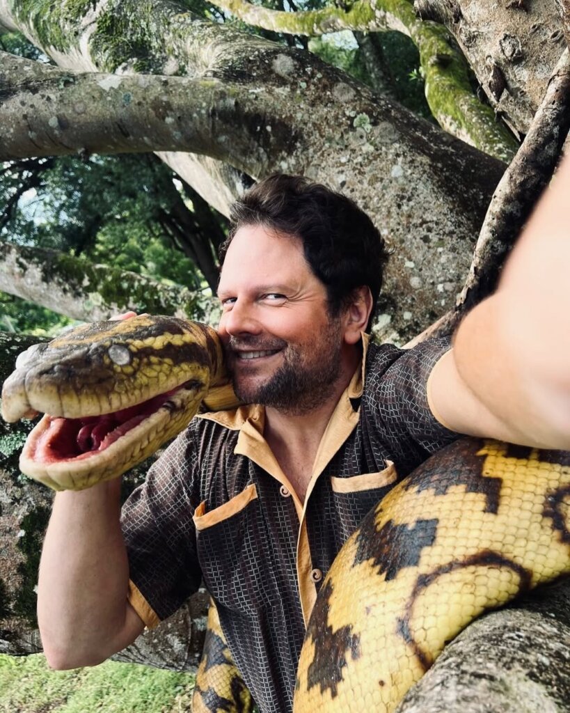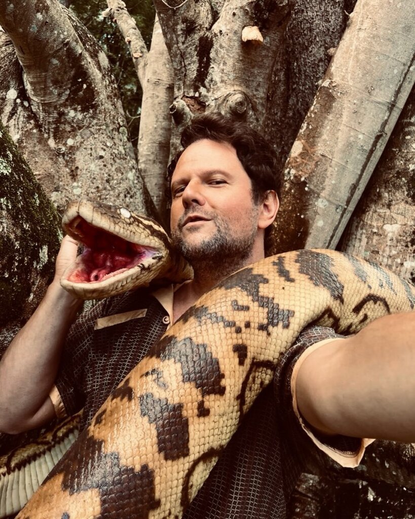 Selton Mello celebrou, em sua redes sociais, sua estreia em Hollywood ao compartilhar registros dos bastidores de “Anaconda”, seu mais recente projeto no cinema internacional. Nos cliques, o brasileiro aparece abraçando a cobra cenográfica usada no filme.