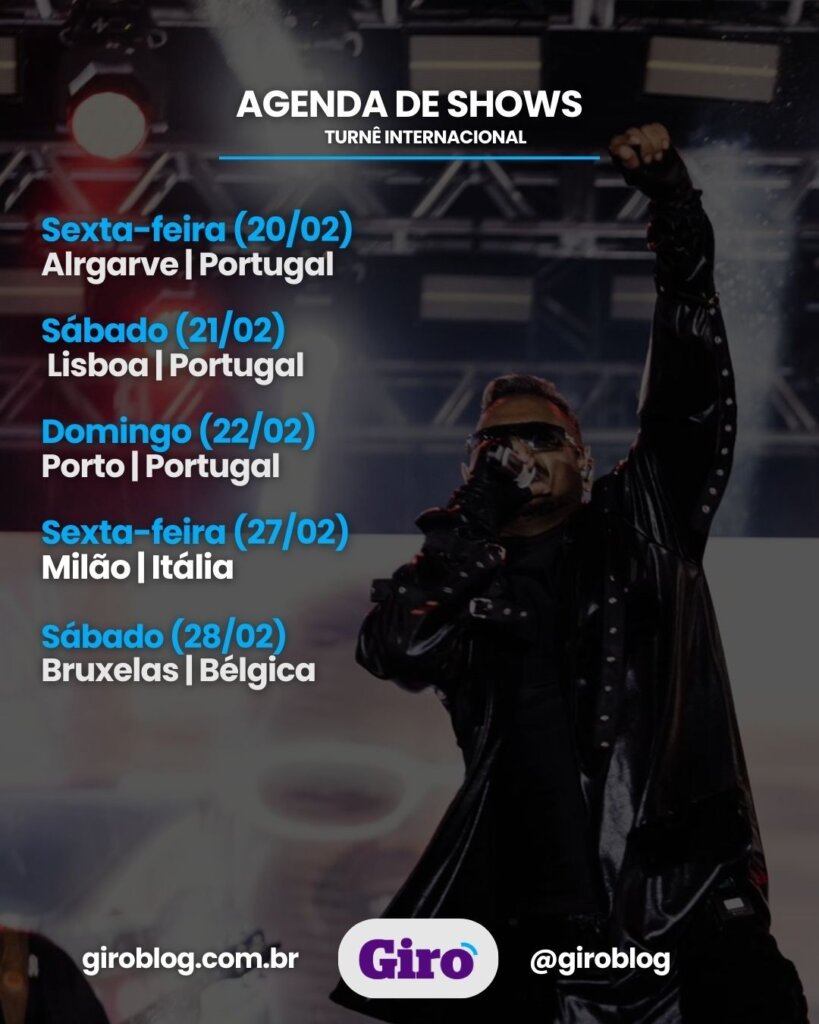 A turnê europeia começa nesta sexta-feira (20), no Algarve, segue por Lisboa e Porto, em Portugal, passa por Milão, na Itália, e se encerra no dia 28, em Bruxelas, na Bélgica.