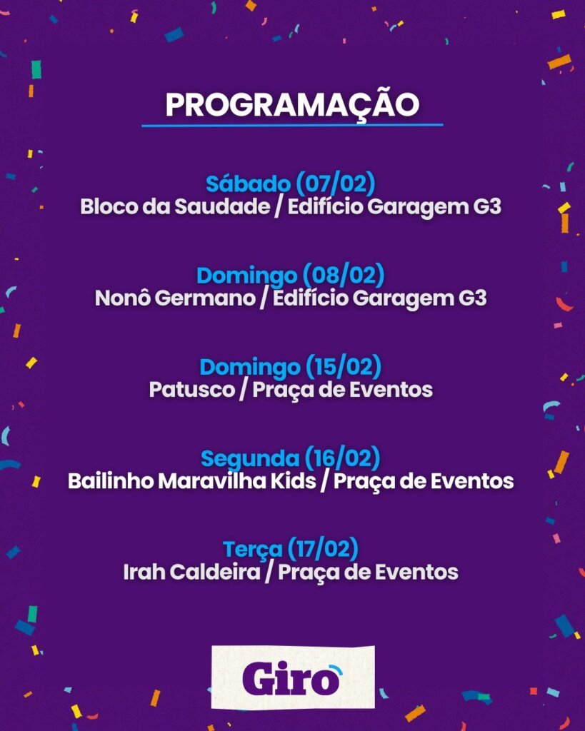 Até o dia 17 de fevereiro, o público poderá curtir apresentações musicais, bailinho infantil, feira temática, ações voltadas para a economia criativa e até carnaval para pets, tudo pensado para oferecer conforto, segurança e muita animação aos foliões de todas as idades.