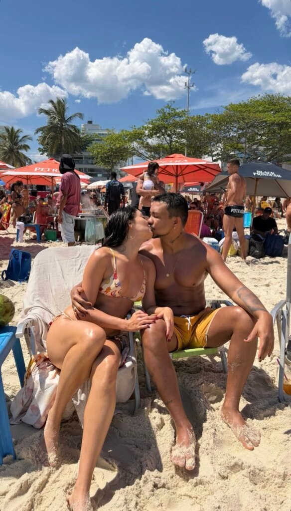 Ao som de Beijo Doce, de Péricles, o casal curtiu a Barra da Tijuca, no Rio de Janeiro, aproveitando o sol e o clima descontraído da praia. O momento rapidamente chamou atenção dos fãs pela sintonia dos dois.