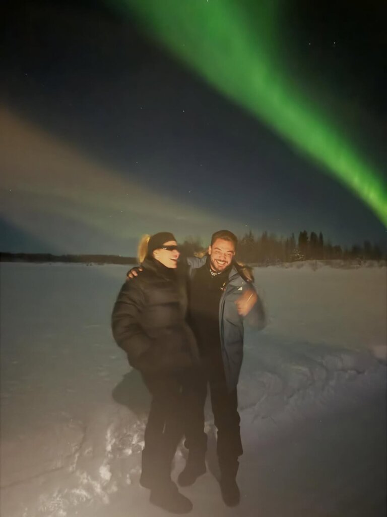 “Eu ao lado da minha aurora boreal. E lá em cima no céu as coisas de Deus!”, escreveu o cantor na legenda, encantando seguidores com o cenário e a declaração romântica.
