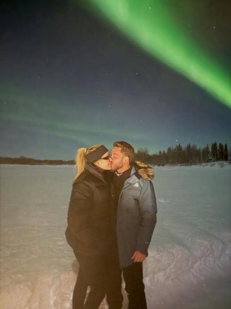 Apaixonado, Wesley Safadão usou suas redes sociais para se declarar à esposa, Thyane Dantas, durante viagem que fizeram para Rovaniemi, na Lapônia, localizada na Finlândia. Nos cliques, o casal aparece trocando carícias em meio ao lugar paradisíaco com a aurora boreal iluminando o céu.