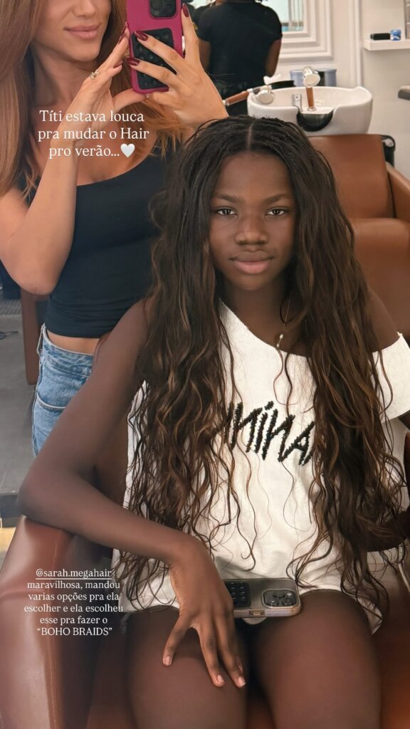 “Títi estava louca para mudar o hair… Sarah, maravilhosa, mandou várias opções para ela escolher, e ela optou por esse estilo, o boho braids”, escreveu Giovanna, ao mostrar os bastidores da transformação. Além de Títi, os artistas são pais de Bless, de 10 anos, e Zyan, de 5.