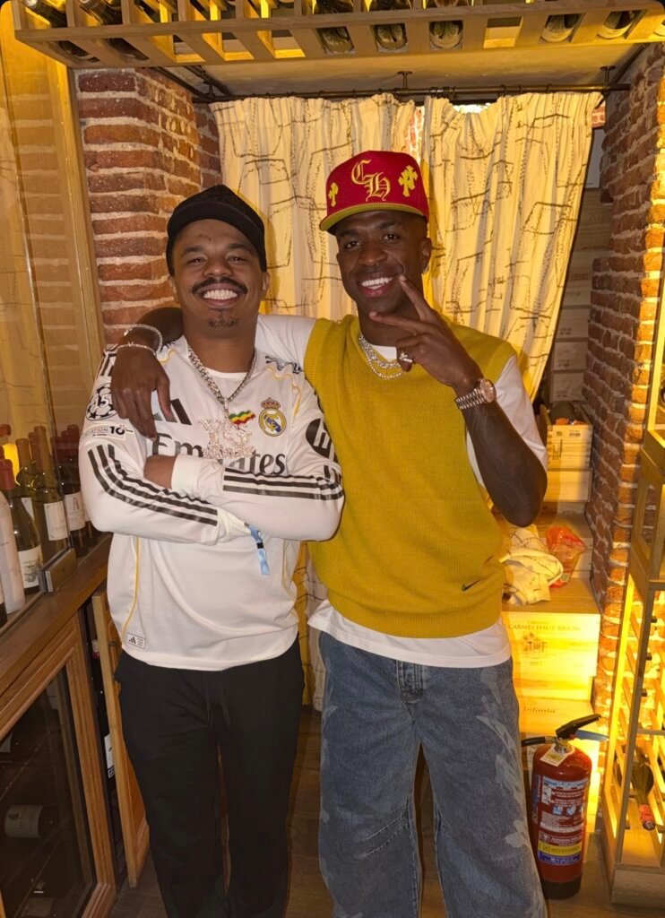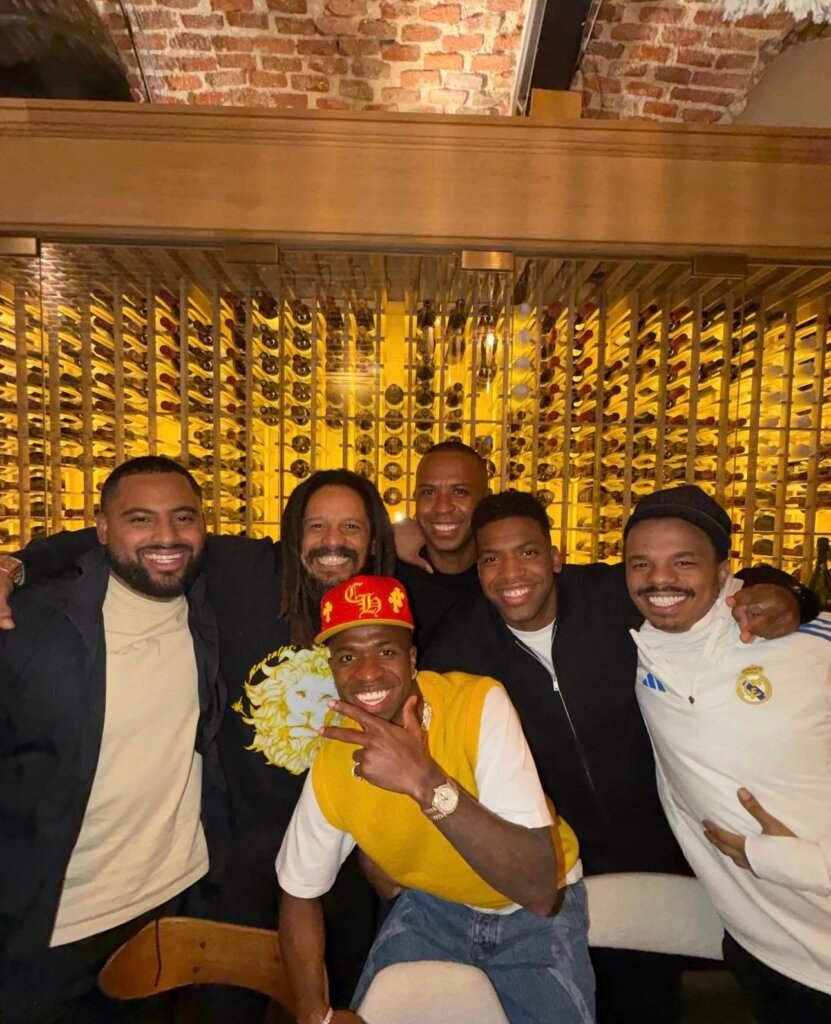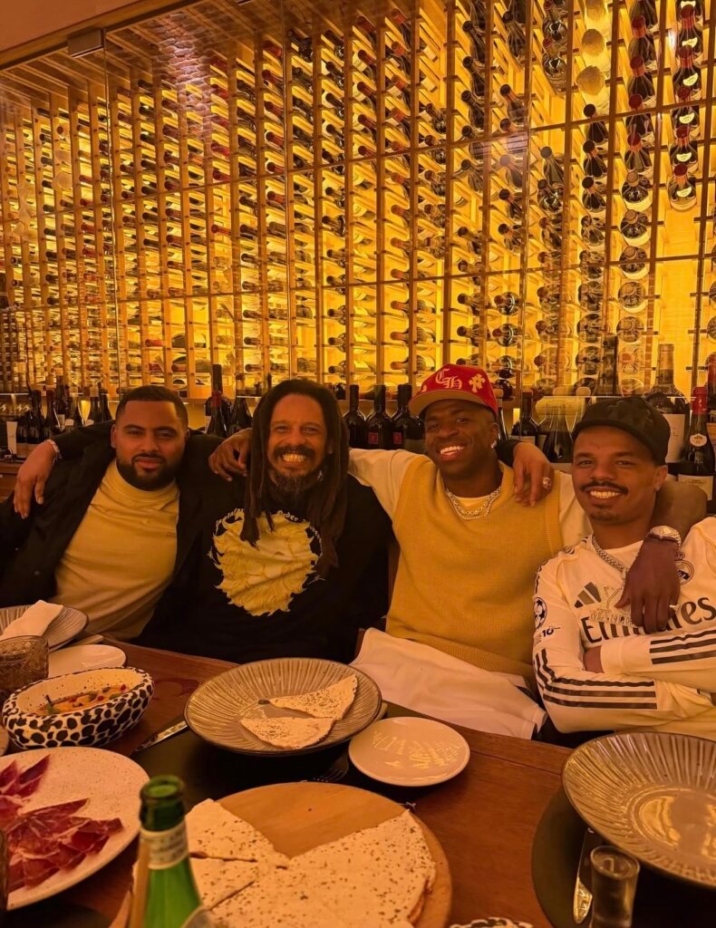 O atacante Vini Jr. jantou com três integrantes da família de Bob Marley em um restaurante de Madri, na Espanha. O encontro aconteceu após a vitória do Real Madrid sobre o Benfica, pela Champions League, partida em que o brasileiro marcou um dos gols e ajudou a garantir a classificação da equipe espanhola.